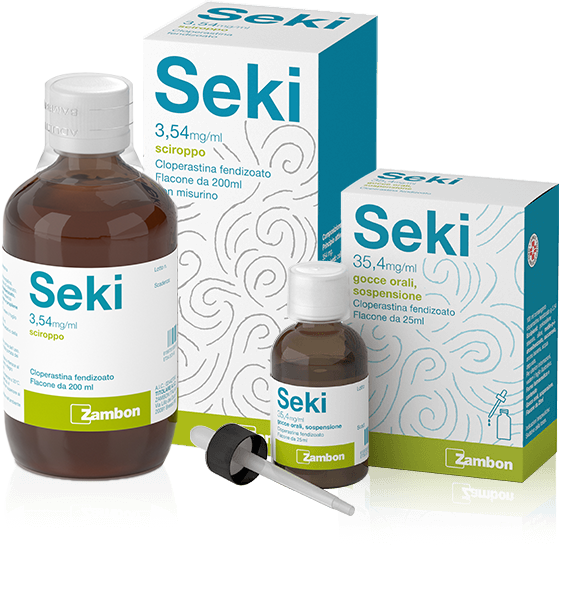 Seki è un medicinale a base di Cloperastina, principio attivo sedativo della tosse secca. Allevia il pizzicore e calma la tosse.